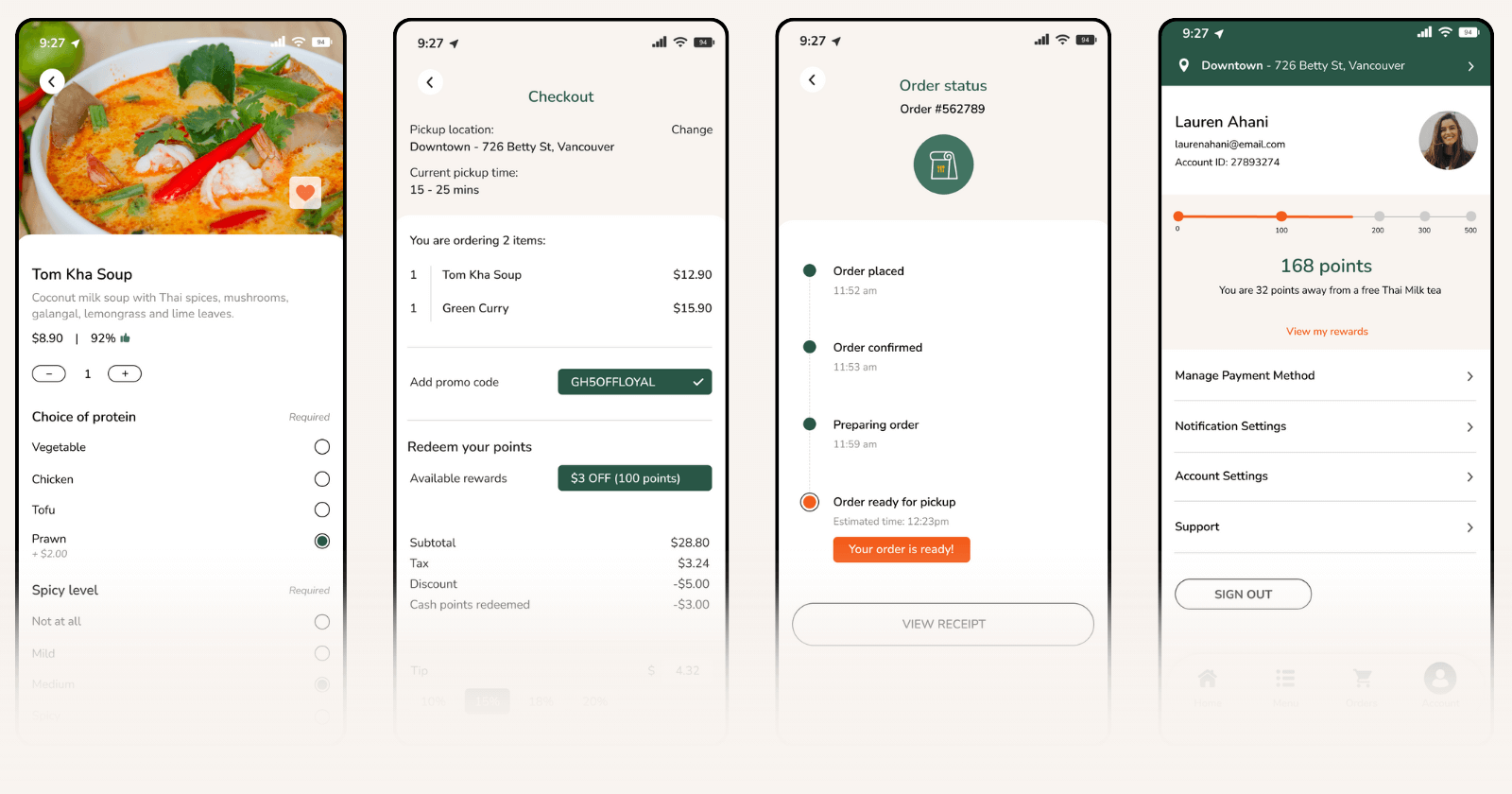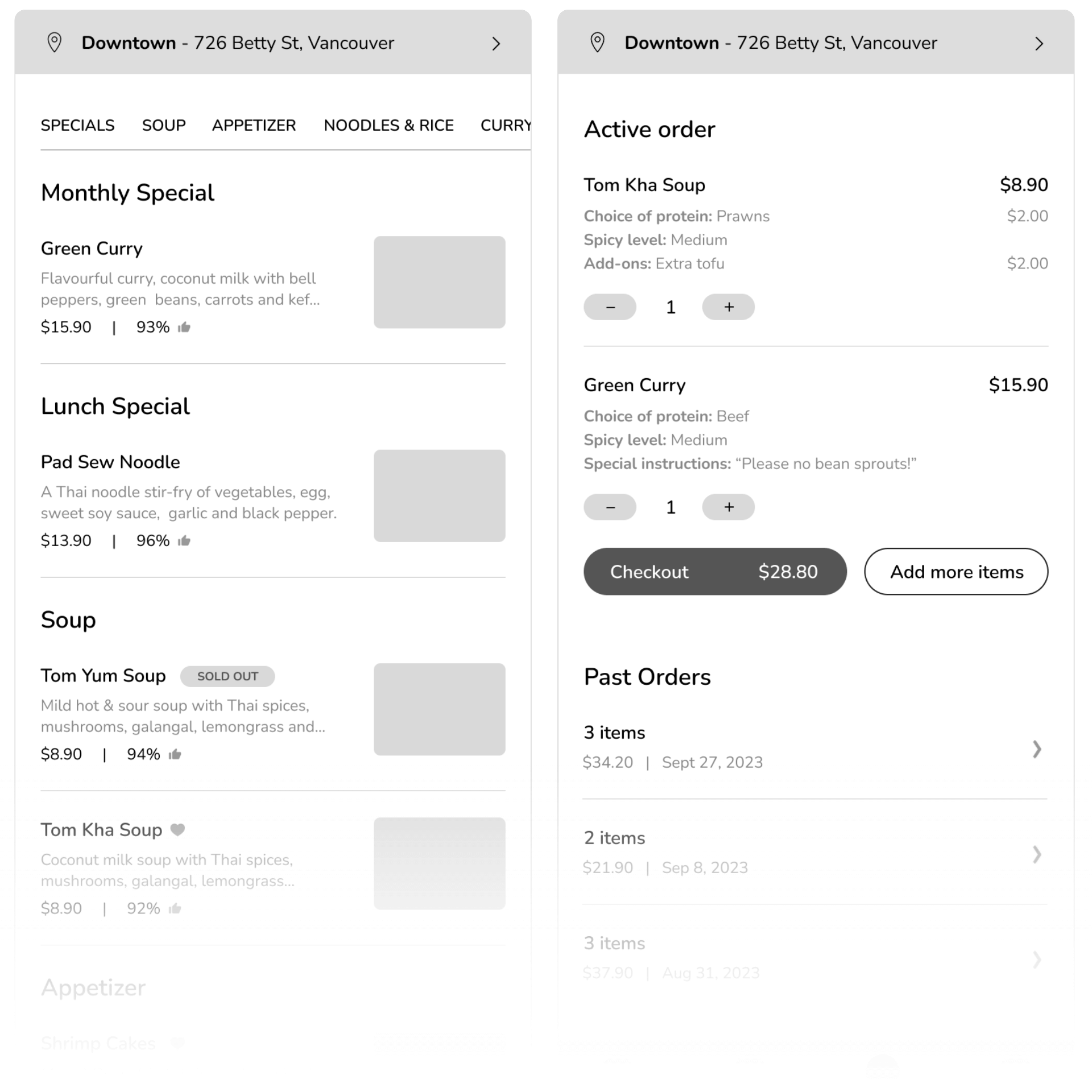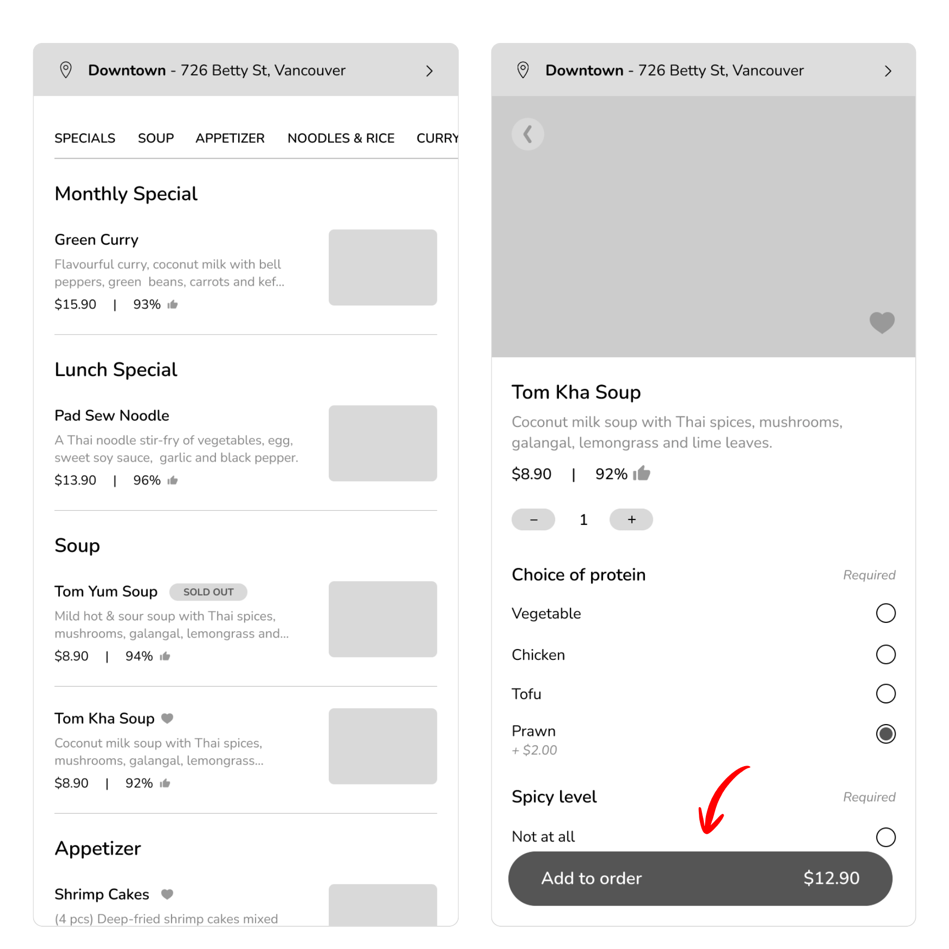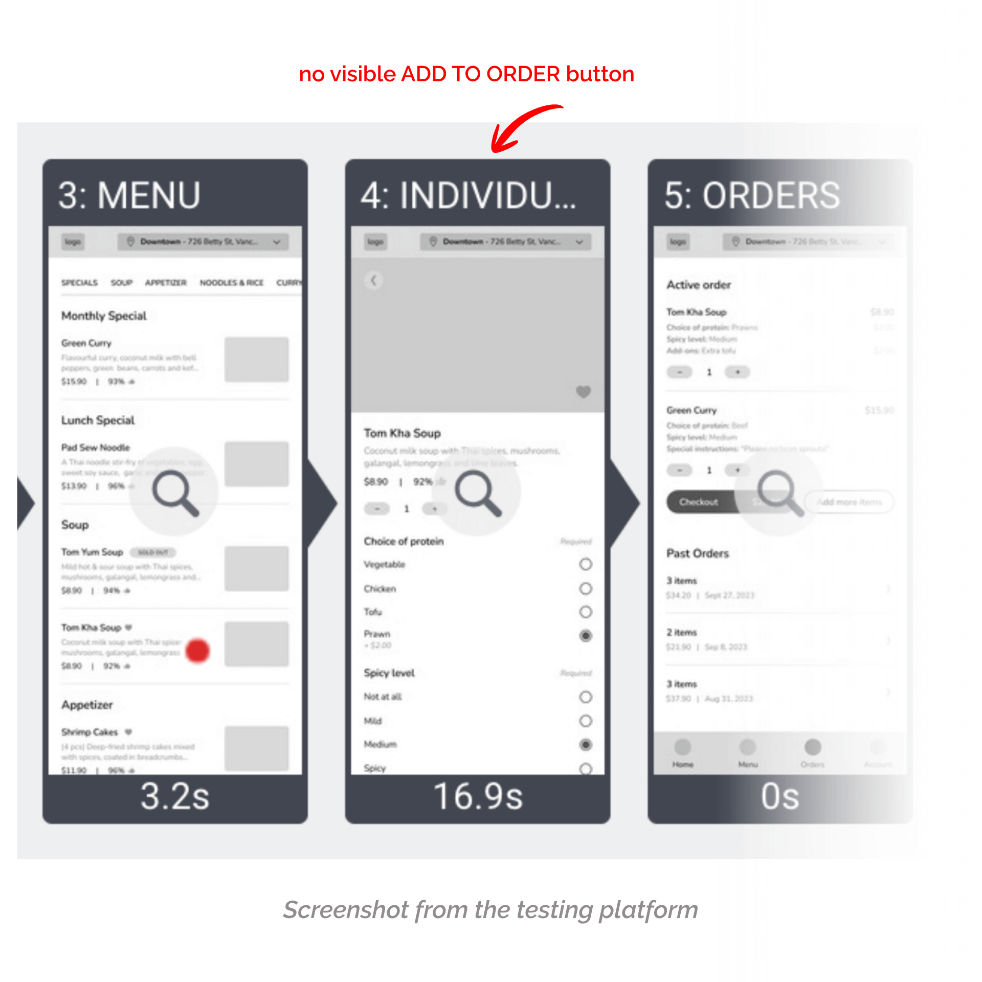 Participants are instructed to browse the menu and add Tom Kha Soup to their cart. This task helps measure how smoothly users can navigate the menu and initiate an order.
