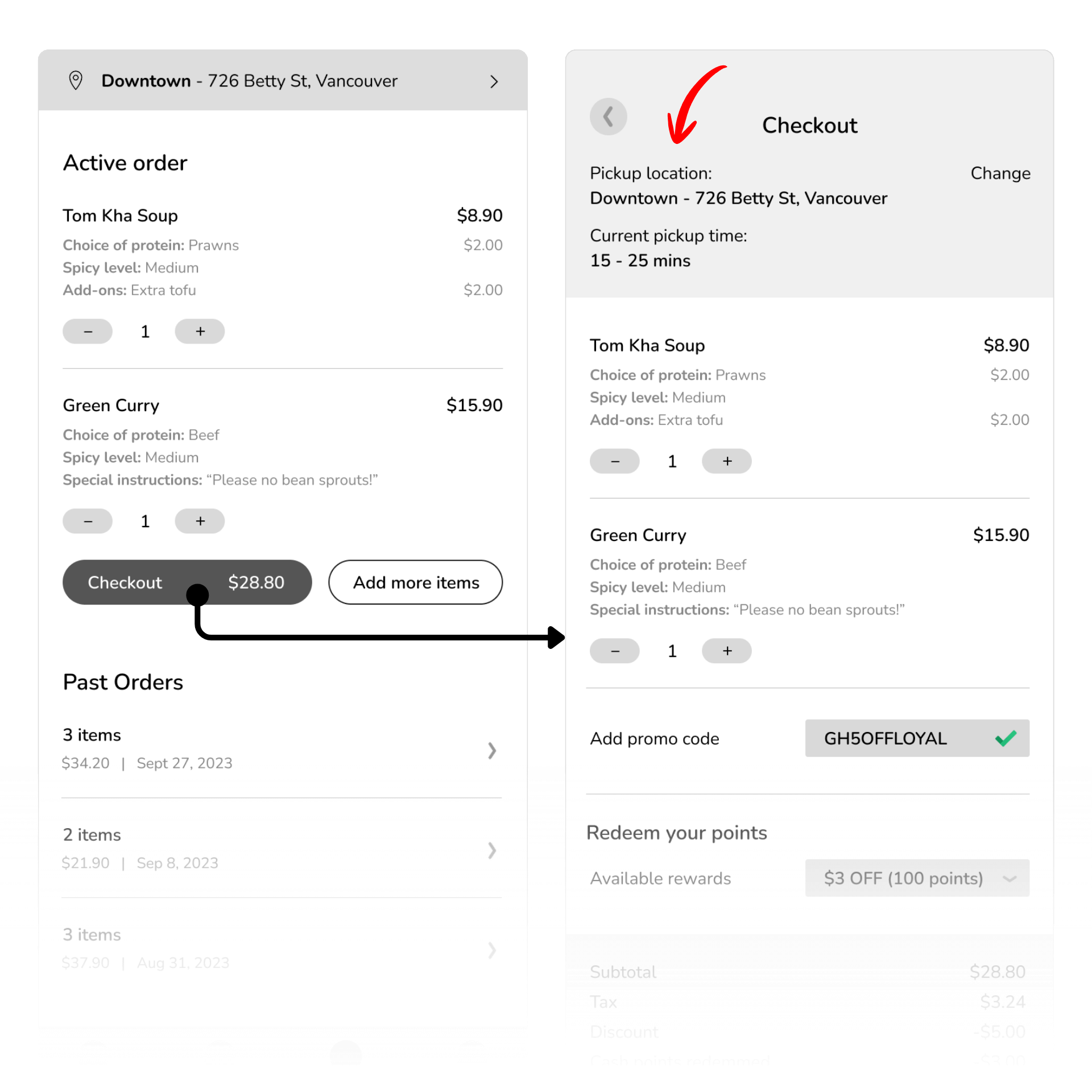 I added the full pickup address at the top of the checkout page, along with a ‘Change’ button that lets users easily update their pickup location if it’s incorrect.