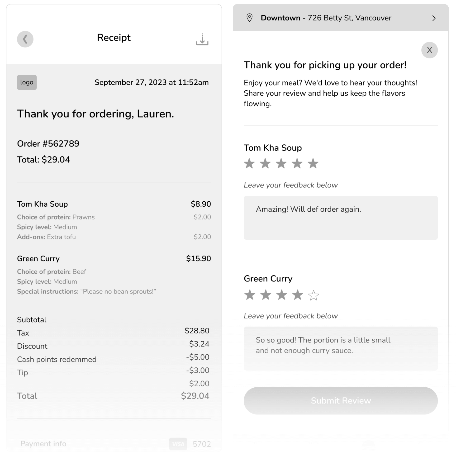Once the order has been picked up, participants are asked to leave a rating and brief review, then download their receipt. This task tests the clarity and accessibility of post-purchase features.